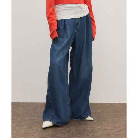 落ち感のあるデニムを使用した、大人っぽいイージーなタック入りのワイドデニム。