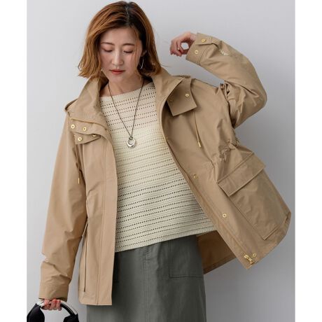 2WAY仕様のフードのついたデザインブルゾン。大き目のポケットをアクセントにすることで、定番アイテムにトレンドを取り入れてアップグレードしました。ネックディテールがやや高めのデザインで、フロントは釦で開け閉めできるのもポイントです。ウエストはドロスト仕様にしているので、絞ることでスタイリングに合わせたシルエットの変化をお楽しみいただけます。フードはファスナーで取り外しが可能で、その日の天気やインナー次第で着脱を選んでも◎。カラーニットやデニムスカートと合わせていただくことでカジュアルすぎず、こなれた印象に仕上がるのでおすすめです。カラーは、明るく晴れやかなベージュ(#002)、上品で暖かみのあるキャメル(#034)、毎日頼れる洗練されたネイビー(#075)の3色展開です。