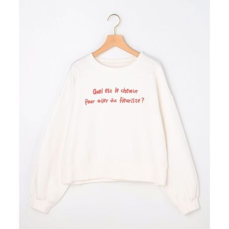 ■デザイン・襟が程よく抜けた程よいボリュームの女性らしい雰囲気のスウェットプルオーバー。・襟と袖口、裾にリブで全体を締めており、さらに袖下の切り替えをアクセントにしています。・タートルネックやシャツ襟のインナーとレイヤードスタイルもおすすめ。・ロングシーズン着用できるのも魅力です。・#001 ホワイトは、前身頃に手書きのメッセージを立体感のある発泡プリント。・#003 ライトグレーは、後ろ身頃にオリジナルフラワーフォトグラフィックのインクジェット。