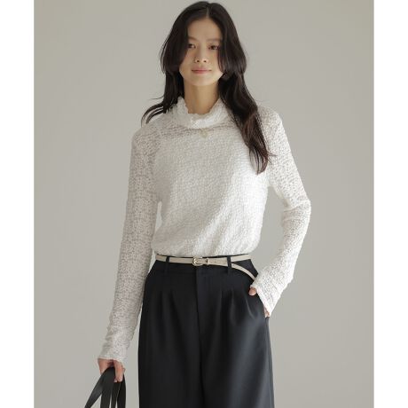 【スタッフコメント】▼身長158cm|着用サイズM (通常着用サイズM)寒い時期にはインナーとしてニュアンス感を。春には1枚でも着用いただける活躍間違いなしの1枚です。