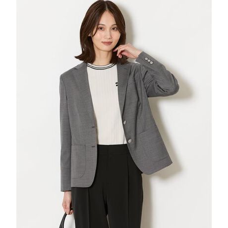 4面パネルと胸のダーツで立体的に仕上げたシングルブレザー。2025年春夏商品よりもアームホールと身幅にゆとりを持たせることで、快適な着心地にブラッシュアップ。また、パッチポケットやゴージラインが高めのノッチドラペル、フラワーホールなど、クラシカルなディテールを踏襲しています。フロントにはロゴ入りのシルバー釦を使用し、オリジナリティのあるアクセントを加えました。一重仕立て。ポケットあり。袖口本開き仕様。