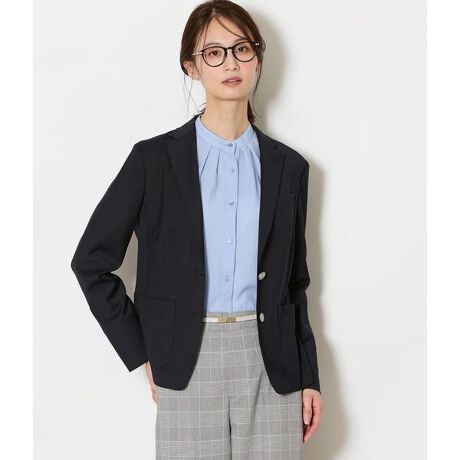 4面パネルと胸のダーツで立体的に仕上げたシングルブレザー。2025年春夏商品よりもアームホールと身幅にゆとりを持たせることで、快適な着心地にブラッシュアップ。また、パッチポケットやゴージラインが高めのノッチドラペル、フラワーホールなど、クラシカルなディテールを踏襲しています。フロントにはロゴ入りのシルバー釦を使用し、オリジナリティのあるアクセントを加えました。一重仕立て。ポケットあり。袖口本開き仕様。