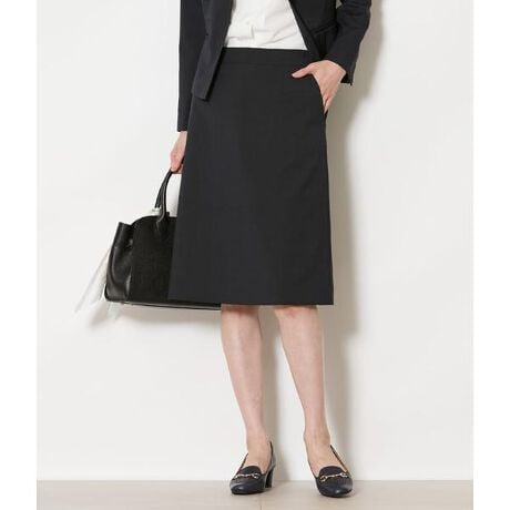 膝丈のシンプルなAラインスカート。広がりすぎず品よく決まる、すっきりとしたシルエットが魅力です。また単品性が高く、様々なトップスと合わせやすいのもポイント。裏地あり。ポケットあり。