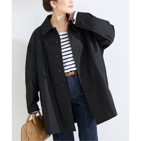 今年はトレンドのステンカラー型にテントラインシルエットが新しい、ややフェードした雰囲気が今っぽいミドル丈コートです。チンタブで襟を立てて着用するのもサマになり、裏地なしで軽く羽織れるアイテム。