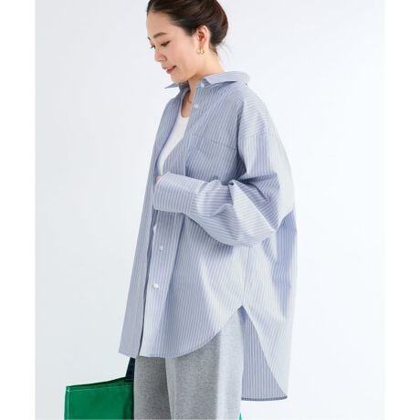 コットンの柔らかさにポリエステルの程よいハリ感をプラスし、カジュアルすぎずキレイめな印象に仕上げています。オーバーサイズのシルエットに、長めの丈と太めのスリーブデザインで、抜け感のあるリラックススタイルに。広めの袖は袖口の調整が可能な仕様で、シルエットに変化をつけられます。