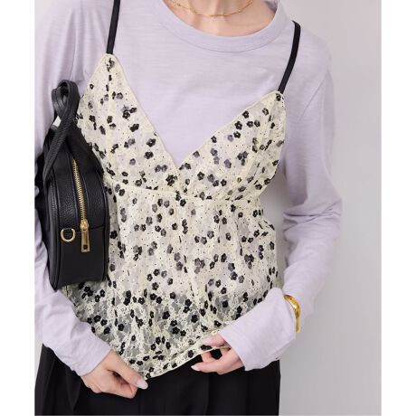 ストレッチレース地にフラワープリントが施されたキャミソールです。