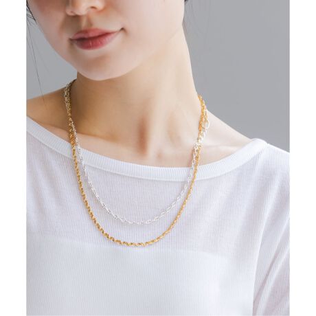 異なる表情を持つ2本のチェーンを組み合わせたレイヤードネックレス。