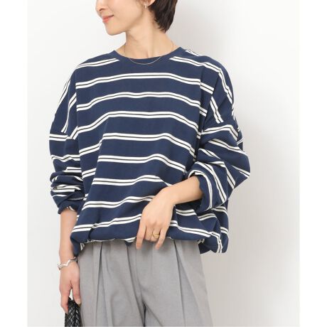 素材感:しっかり目のカットソー素材。さらっとした滑らかな質感ではなく、ドライでカジュアルな印象です。