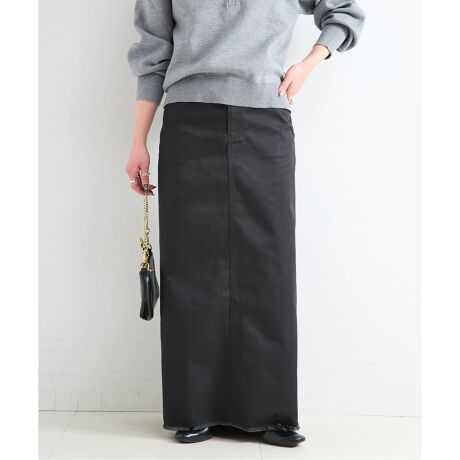 綺麗目な表面感のツイル素材を使用し、裾は断ち切りのフリンジ仕様で動きのあるディティールに仕上げています。裾に向かって広がる微フレアデザインがきれい見えするので、カジュアルなトップス合わせもサマになります。