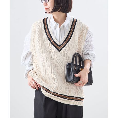 ニットの様な表情のジャガード生地を使用したチルデンベスト。
