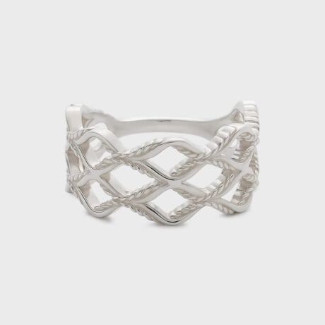 [型番:30261111018]バスケットをイメージして抜け感たっぷりにデザインした透かしのピンキーリング。プレーンな線とツイストの線で柔らかく編み込まれたシルエットは、少しだけ歪なクラフト感を添えて優しい印象に仕上げました。幅がありつつも軽やかなボリュームは、細身のリングとのコーディネートにもおすすめです。※天然石や天然素材を使用しているものは、サイズ・色味・風合いの違いや、若干の傷、内包物の有無などに個体差があります。予めご了承ください。※サイズ直しプラスマイナス2号迄。