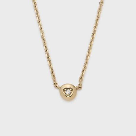 【Soft Gold Series】新しい季節の気配に期待が膨らむ、胸の高鳴りをイメージした小さなハートシルエットの中にダイヤモンドが輝くネックレス。隠しモチーフのようにさり気ないハートとダイヤモンドを掛け合わせることで、ベーシックなフォルムの中に遊び心を添えました。ワンポイントとしてデイリーに使いやすいサイズ感が胸元を優しく印象付けます。※天然石や天然素材を使用しているものは、サイズ・色味・風合いの違いや、若干の傷、内包物の有無などに個体差があります。予めご了承ください。※肌なじみのいいソフトゴールドカラーのコーティングを使用しています。