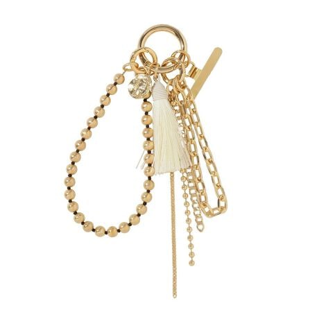 さっと付けて印象チェンジ 大人のマルチチャーム複数のチャームを組み合わせたデザインが、さりげなく視線を引くアクセントになります。タッセルの柔らかな揺れ感と、異なるチェーンの重なりが程よい立体感を演出し、バッグや鍵まわりに表情をプラスしてくれます。シンプルなアイテムに付けるだけで、こなれた印象に仕上がるのが魅力です。