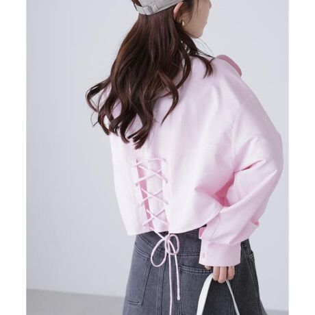 楊柳の表情のある合繊生地の無地と、サッカー合繊生地のストライプ柄を揃えたアソート展開のブラウス。中肉厚で透け感がなく、一枚でも着用可能。表情のある合繊素材はシワになりにくく、ご自宅でお手入れがラクにできます。前はベーシックなショート丈、後ろは共地の丸紐を使ったレースアップデザイン。ドロップショルダーとゆとりのあるバストに対し、ショート丈のバランスがスタイルアップを期待できます。ミニスカートやパンツとのコーディネートがおすすめです。※モデルの着用画像の場合、光の当たり具合により、実際の色味と異なって見えることがございます。色味は、商品単体の画像をご参照ください。