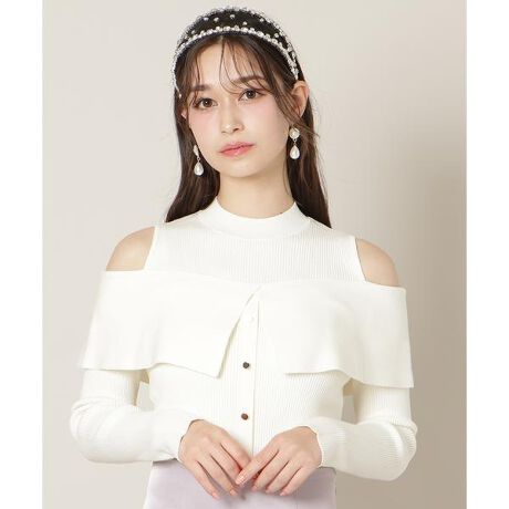 程よい肌見せでこなれ感を演出する、オープンショルダーレイヤードニット【Design】・肩部分が程よく開いたオープンショルダーデザインで、抜け感のある印象に。・レイヤード風のデザインが、1枚で着映えするポイント。・合わせるボトムを選ばず、幅広いスタイリングに活躍します◎・きれいめからカジュアルまで、さまざまな着こなしを楽しめる1枚です♪【Fabric】・着心地の良いやわらかな風合いのニット素材を使用。・ご自宅でお手入れが出来るのも嬉しいポイント♪・ホワイト、ピンク、ミント、ブラックの4色展開となります。【Care】手洗い可能
