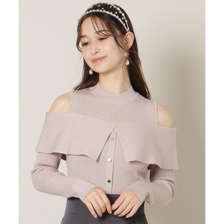 オープンショルダーレイヤードニット