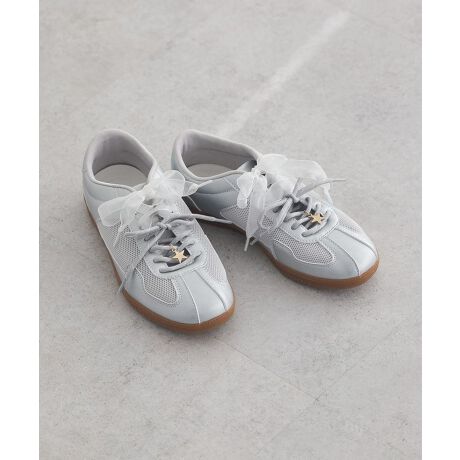 今取り入れたい今季トレンドのフェミニンなスニーカー。軽やかなチュールとスポーツテイストなパラコードのダブルリボンがポイントです。レザー調素材にメッシュを合わせた軽やかさと、ラバーソールで快適な履き心地も魅力的。シンプルながらも存在感があり、いつものコーディネートに合わせるだけで足元がぐっと華やぐおすすめのアイテムです。※モデル着用画像は、光の当たり具合で色味が違って見える場合がございます。※お使いのモニター環境によって商品の色味が違って見える場合がございます。
