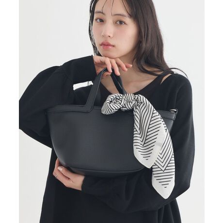 気分で変えられるスカーフ付き2WAYハンドルにあしらったスカーフがさりげないポイントになり上品さと可愛らしさを両立します。スカーフの結び方を変えるだけで印象が変わりコーディネートを楽しめます。手持ちとショルダーの2WAY仕様なのでシーンに合わせて使い分けができるのも嬉しいポイントです。ミニサイズながらもマチがあり財布やスマートフォンなど必要なアイテムが収まります。軽くて持ちやすく長時間のお出かけでも負担になりにくいです。きれいめからカジュアルまで幅広く合わせやすく万能に活躍します。スカーフ付きミニトートとして日常の装いに程よい彩りを添えてくれます。※モデル着用画像は、光の当たり具合で色味が違って見える場合がございます。※お使いのモニター環境によって商品の色味が違って見える場合がございます。