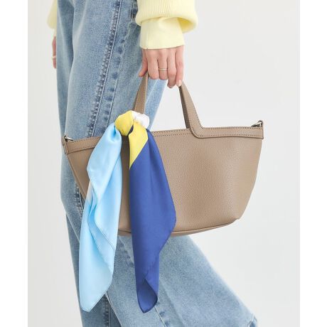 気分で変えられるスカーフ付き2WAYハンドルにあしらったスカーフがさりげないポイントになり上品さと可愛らしさを両立します。スカーフの結び方を変えるだけで印象が変わりコーディネートを楽しめます。手持ちとショルダーの2WAY仕様なのでシーンに合わせて使い分けができるのも嬉しいポイントです。ミニサイズながらもマチがあり財布やスマートフォンなど必要なアイテムが収まります。軽くて持ちやすく長時間のお出かけでも負担になりにくいです。きれいめからカジュアルまで幅広く合わせやすく万能に活躍します。スカーフ付きミニトートとして日常の装いに程よい彩りを添えてくれます。※モデル着用画像は、光の当たり具合で色味が違って見える場合がございます。※お使いのモニター環境によって商品の色味が違って見える場合がございます。