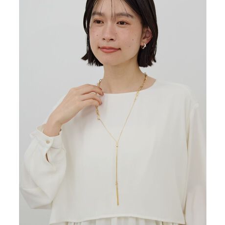 きらりと輝く2種類のチェーンを組み合わせたデザインネックレス。スライドビーズで楽に着脱でき、着こなしに応じてお好みの長さに調整できるのもポイントです。チェーンとメタルバーのどちらを前にしても着用いただける2WAY仕様なのも魅力。ワントーンで合わせるトップスを選ばず、品良く女性らしい雰囲気を演出してくれるおすすめのアイテムです。※モデル着用画像は、光の当たり具合で色味が違って見える場合がございます。※お使いのモニター環境によって商品の色味が違って見える場合がございます。
