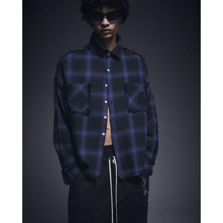 ネル素材特有の柔らかな風合いに断ち切りやクラッシュディテールを加えることでグランジ感のある表情に仕上げています。