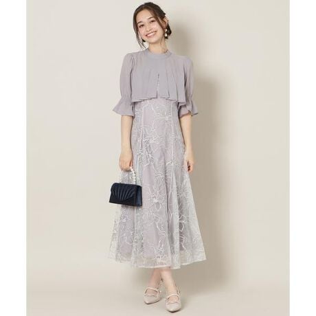 【Design】・フロントがスリットのように開いた、抜け感のあるブラウス。・バックスタイルはボタン仕様で、後ろ姿まで上品に仕上げました。・キャミワンピースは、繊細なチュールデザインが、上品で華やかな印象を演出します。・肩ひもはアジャスター付きで、サイズ調節が可能です♪・バックスタイルはレースアップ仕様で、身体のラインをきれいに見せてくれるシルエットに!・それぞれ単品でも着用でき、幅広いスタイリングを楽しめます♪【Fabric】・透け感のある生地にフラワー刺繍を施した華やかなファブリック。・ピンク、ラベンダー、ブラックの3色展開になります。【Care】・ドライクリーニング