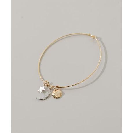 表情豊かなフェイスモチーフの月と表面にテクスチャを施した星が、動くたびに手元で繊細に揺らめき視線を集めます。
