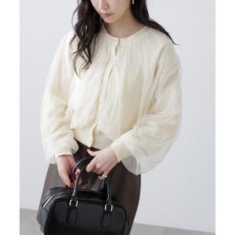 ふんわりチュールを重ねた軽やかな印象のレイヤードカーディガン。程よい透け感がコーディネートに奥行きをプラスし上品な印象に見せてくれます。ボリュームスリーブとコンパクトな着丈のバランスで、スタイルアップも叶います。羽織りにも前ボタンを留めてトップス風にも着回せます。どんなボトムスとも合わせやすく、デニムやスウェットパンツ合わせで甘辛MIXスタイル、ナロースカート合わせもおすすめです。ONにもOFFスタイルにも活躍してくれるアイテムです。※モデルの着用画像の場合、光の当たり具合により、実際の色味と異なって見えることがございます。色味は、商品単体の画像をご参照ください。