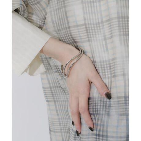 滑らかな曲線を描くメタルラインが手首を包み込むデザインバングルです。