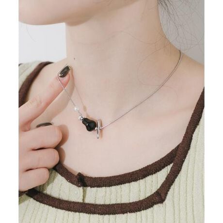 有機的なフォルムのブラックパーツに、可憐な小粒パールを添えたネックレスです。