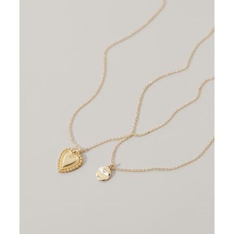 縁取りを施したクラシカルなハートモチーフと、小さなコインプレートのネックレスをセットに。