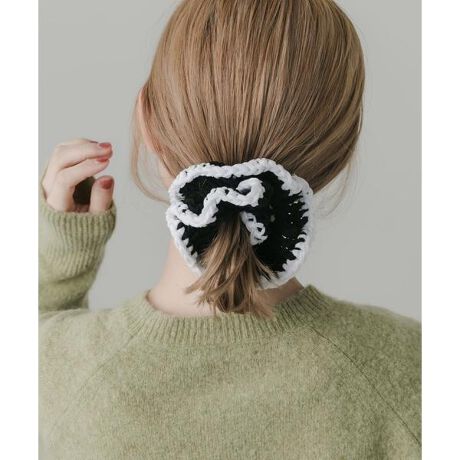 ざっくりと編まれたニット地にコントラストの効いた縁取りカラーをあしらったシュシュ。