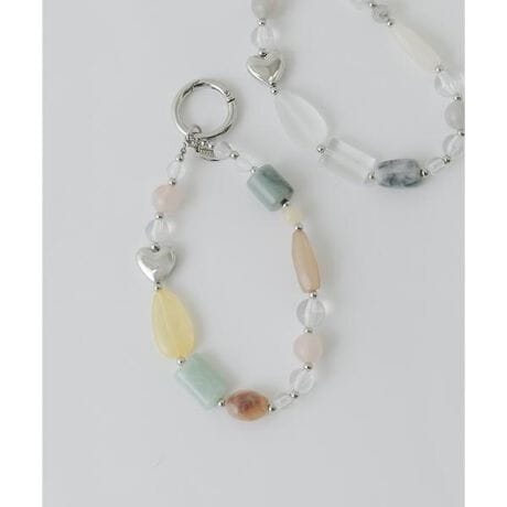 様々な色や形のビーズをじゃらっと繋ぎ合わせた、見ているだけで気分の上がるキーチェーン。