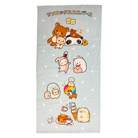 サンエックスのようせいの魔法で、個性豊かな仲間たちが世界を超えて集まりました。永く愛されるキャラクターから新しい仲間まで、あなたに寄り添いながら笑顔がこぼれるひとときを届けます!サンエックスユニバースのリラックマ、すみっコぐらし、たれぱんだが集合しているバスタオルです。毎日のバスタイムやプールなどにぴったりなサイズ感◎デザインも可愛く男女問わずに使えますよ♪デザイン違いで2種類ございますので集めて揃えてみませんか♪