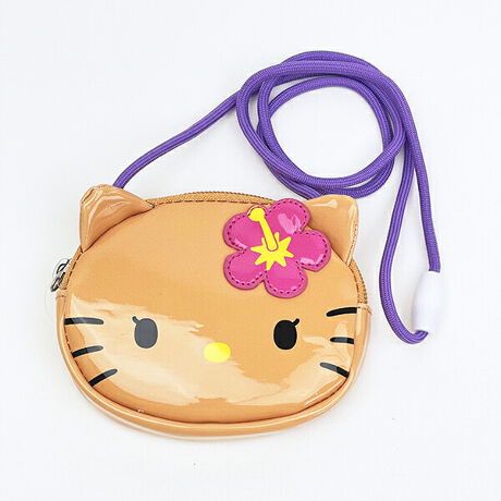 日焼けキティのコインケースです☆小銭やカギなどの小物を入れるのにピッタリ!エナメル素材で日焼け×ハイビスカスの平成レトロが、とってもキュート♪ひもつきなので首から下げれるのもポイントです☆彡