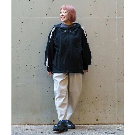 ラフになりがちなパーカーを、計算されたシルエットで大人っぽく仕上げた一枚。