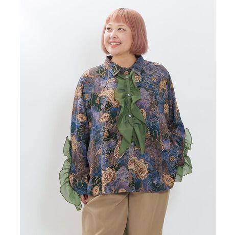 フリルを付ければコーディネートの主役に、外せば定番型の柄シャツとしてすっきり着用可能◎