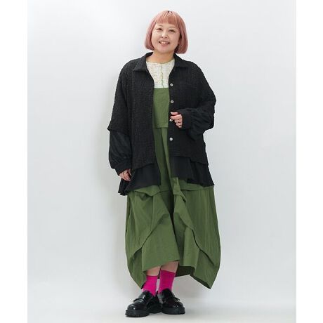 身頃には凹凸感が楽しいシャーリング生地を使用し、袖と裾にはシアー素材を取り入れることで、軽やかな抜け感をプラスしました。