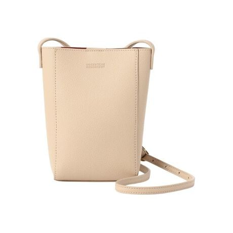 2026SSシーズンよりはマチ幅を増やし、利便性を向上しました。シボ感のあるレザー見えする素材で高級感があり大きめのスマートフォンも楽々収納できるコンパクトな縦型ミニポーチです。ワンタッチで開閉可能なマグネット仕様。背面外側にはすぐに取り出せるポケットがついており、小物類の収納も可能で、見た目以上に収納力の高いポシェットになっています。