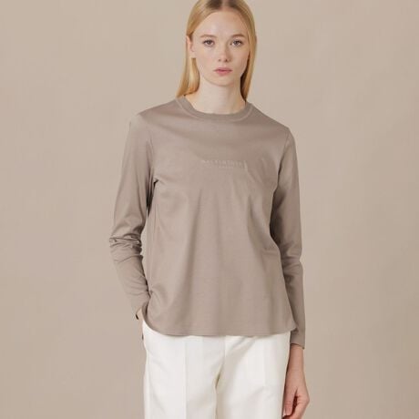 [型番:G5P01761__]【ウォッシャブル】【着用推奨シーズン:春・秋・冬】<素材説明>微光沢と適度なハリ感を持ち、上品できれいな表情のジャージ素材です。<デザインポイント>衿をニットリブデザインにした上質感のあるTシャツです。胸元にMACKINTOSHLONDONのロゴを同色系でプリントし大人な印象に仕上げ、脇のスリットで抜け感をプラスしたアイテムです。