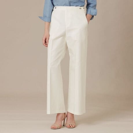 [型番:G5R04716__]【ウォッシャブル】【着用推奨シーズン:オールシーズン】<素材説明>40/1コットンを使用した二重織素材です。繊細な起毛加工を施し、仕上げで膨らみと滑らかな風合いを出しています。<デザインポイント>ほど良いワイドシルエットながら、ウエストまわりをすっきりさせることで、カジュアル過ぎないきれい目な印象のフルレングスパンツです。サイドに配したゴムアジャスターで着こなしに合わせてフィット感も調整可能です。裏地なしです。