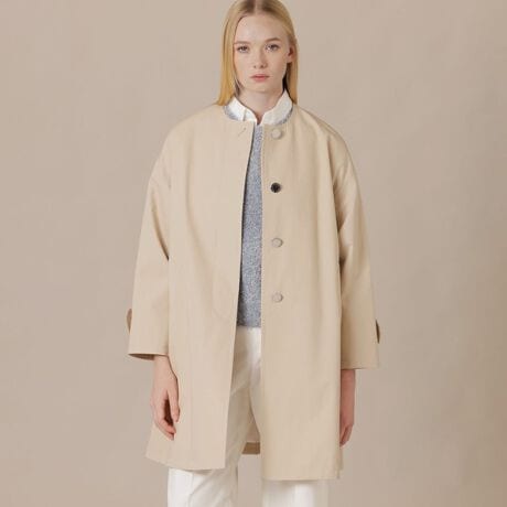 MACKINTOSH LONDONの定番モデル「ROSLEY/ロズリー」のノーカラーコートです。スッキリとした衿ぐりとドロップした肩、裾に向けて広がる優雅なシルエットはインナーやボトムを選ばず、どなたが着てもサマになるコートです。肩を少しコンパクトにリニューアルし、よりAラインに広がるシルエットに仕上げました。総裏地付き、ブラック(#09)のみ裏地(身頃)レオパード柄です。同素材のコート、(品番:G5A12710)、(品番:G5A02710)、(品番:G5A17710)もご用意しております。