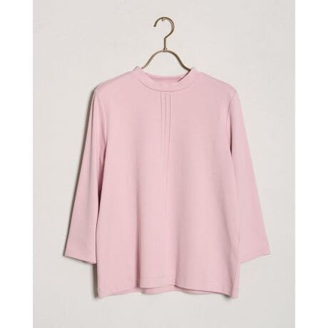 一枚着はもちろん、インナーとしてもオールシーズン活躍するセンターのピンタックをデザインアクセントにした7分袖のハイネックデザインです。