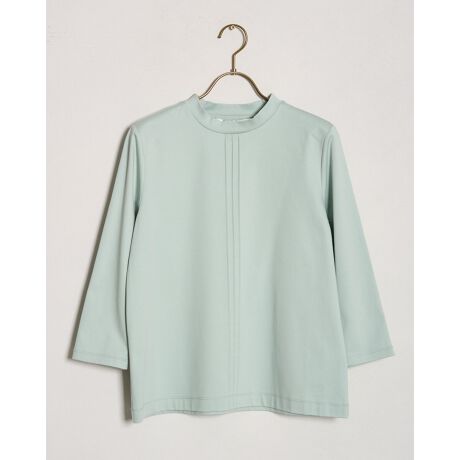 一枚着はもちろん、インナーとしてもオールシーズン活躍するセンターのピンタックをデザインアクセントにした7分袖のハイネックデザインです。