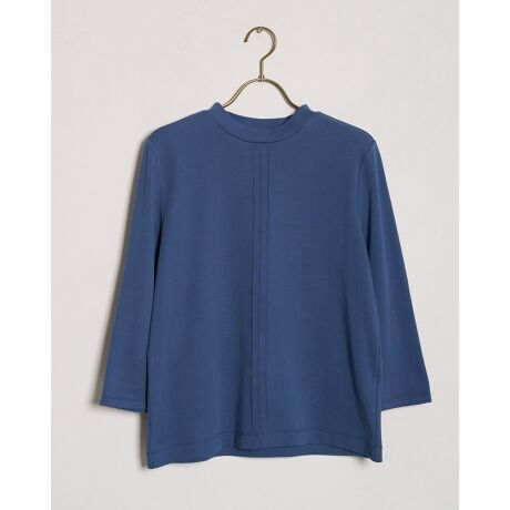 一枚着はもちろん、インナーとしてもオールシーズン活躍するセンターのピンタックをデザインアクセントにした7分袖のハイネックデザインです。