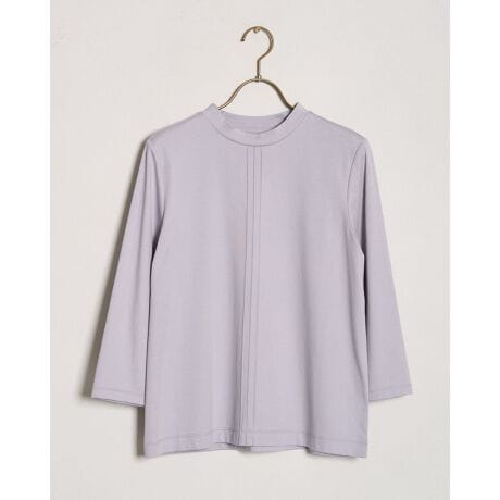 一枚着はもちろん、インナーとしてもオールシーズン活躍するセンターのピンタックをデザインアクセントにした7分袖のハイネックデザインです。