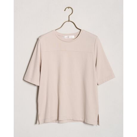 これからの季節にインナーはもちろん、一枚着としてもおすすめのクルーネック5分袖カットソーです。