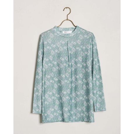 繊細なフラワープリントと首元のタックをアクセントに上品な雰囲気に仕上げました。