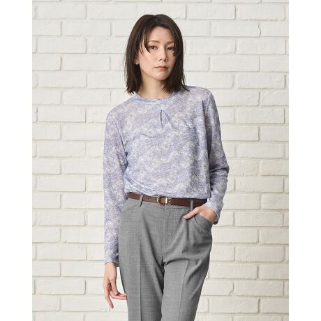 繊細なフラワープリントと首元のタックをアクセントに上品な雰囲気に仕上げました。