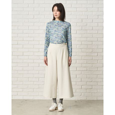 シルエットはキュロットみえする裾にかけて広がるフレアラインがポイント。